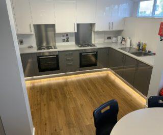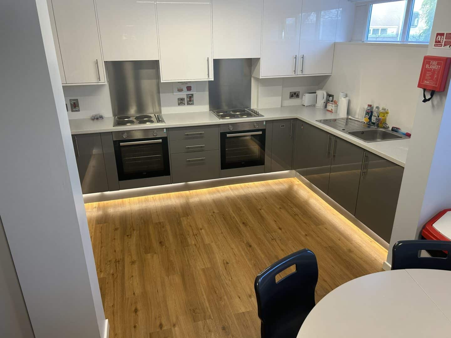 Stran Halls has 378 modern, fully furnished, single occupancy study bedrooms with a choice of shared or ensuite bathroom facilities. All rooms have access to communal kitchen facilities, equipped with fridge, mini-oven and hob, microwave, toaster and individual storage units.